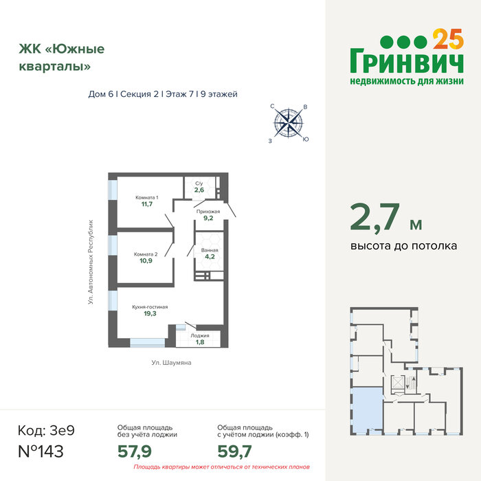 Продажа квартиры: Екатеринбург, ул. Шаумяна, «Южные кварталы» (Брусника) (Дом 6) (Юго-Западный)