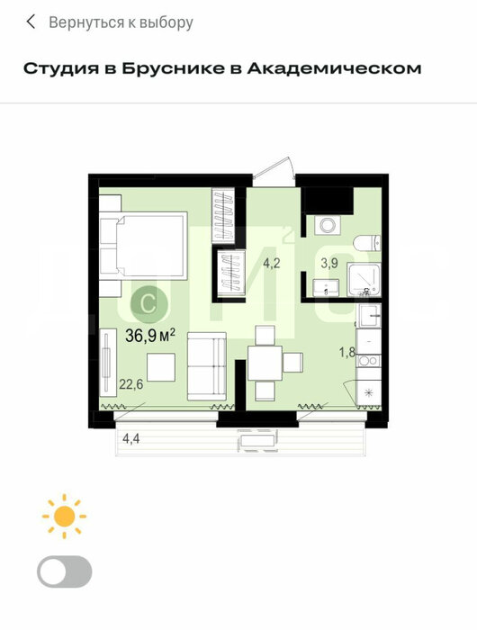 Екатеринбург, ул. Академика Ландау, 9, «Брусника в Академическом» (Дом 2) (Академический) - фото квартиры 10 июля 2024 90 дн. 1 18.05 4/9 3 070 000