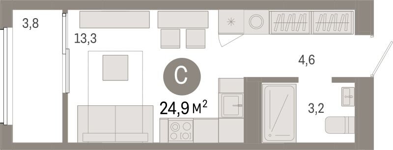 Общая площадь:24.9 м2