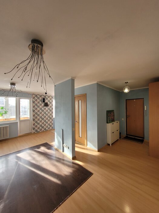 Перепланировка в евротрешку (разрешение есть) - просторная кухня-гостиная с балконом во двор, 2 изолированные спальни.