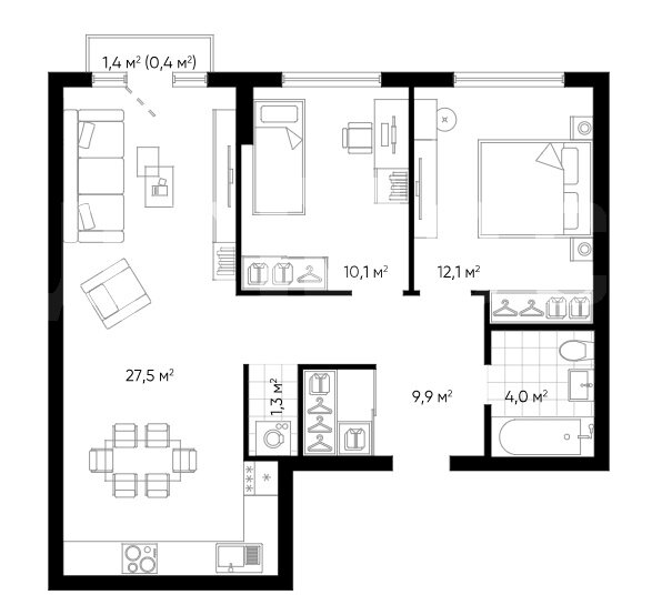 - 62.2 м2