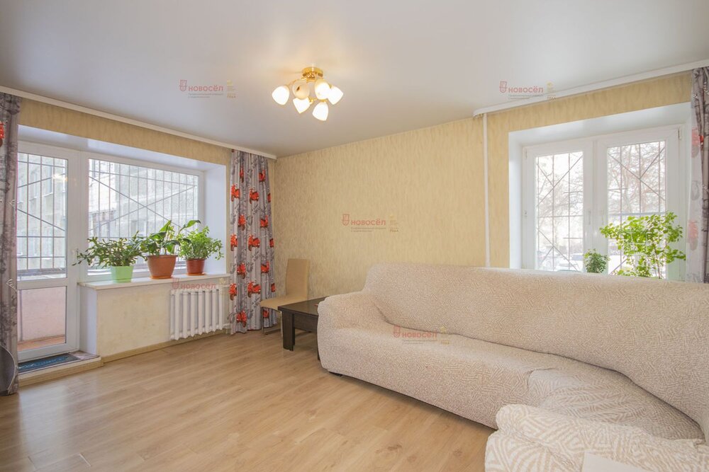 Площадь 59,1 кв.м. Планировка удобная, окна выходят на две стороны: в тихий двор и на улицу, за счёт чего в квартире всегда светло и есть нормальное проветривание.