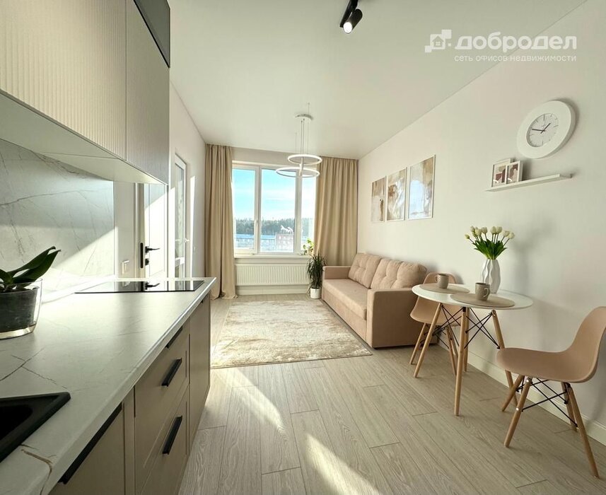 Интерьер квартиры выполнен в стиле евроремонта, благодаря чему новым владельцам не потребуется дополнительных вложений и ремонтных работ.