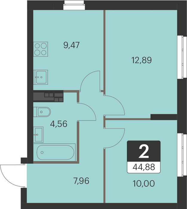 • 2-к квартира, кв-л, 45, стр. 1.3А, ЖК «ТвояПривилегия» — 4 кв. 2024 г.