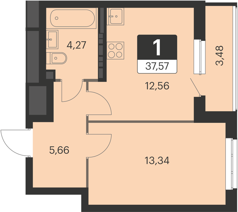 Продается готовая 1-комнатная квартира площадью 37.4 кв.м. от девелопера «Академический» в жилом квартале «Спутник 1».