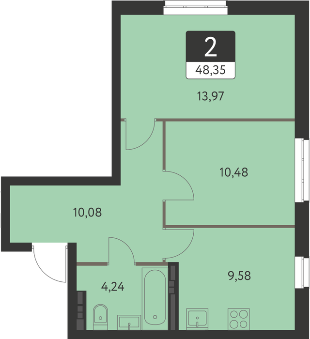 Продается 2-комнатная квартира площадью 47.6 кв. м. от девелопера «Академический» в жилом квартале «Спутник 1». Срок сдачи дома в 2027 году.