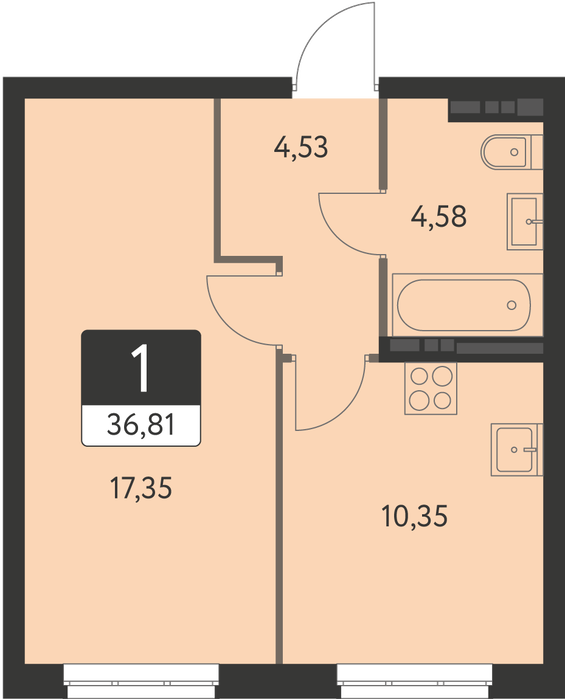 Продается 1-комнатная квартира площадью 36.4 кв. м. от девелопера «Академический» в жилом квартале «Спутник 1». Срок сдачи дома в 2027 году.