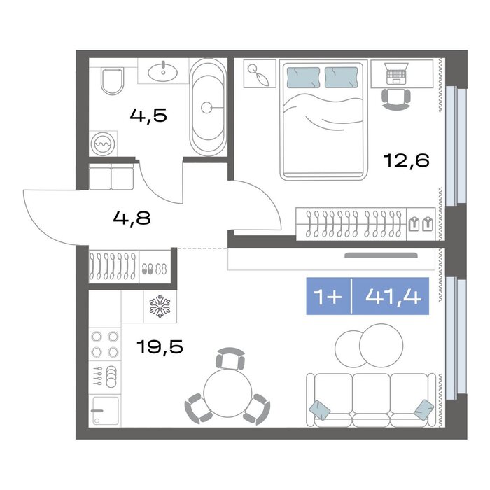 Общая площадь:41.4 м2
