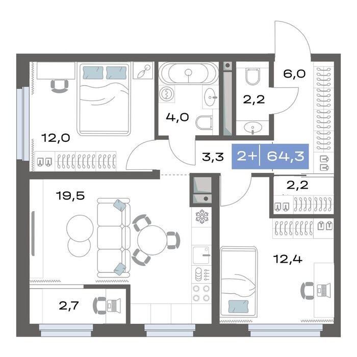 • 2-к квартира, кв-л, 45, стр. 1.3А, ЖК «ТвояПривилегия» — 4 кв. 2024 г.