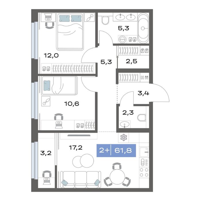 • 2-к квартира, кв-л, 45, стр. 1.3А, ЖК «ТвояПривилегия» — 4 кв. 2024 г.