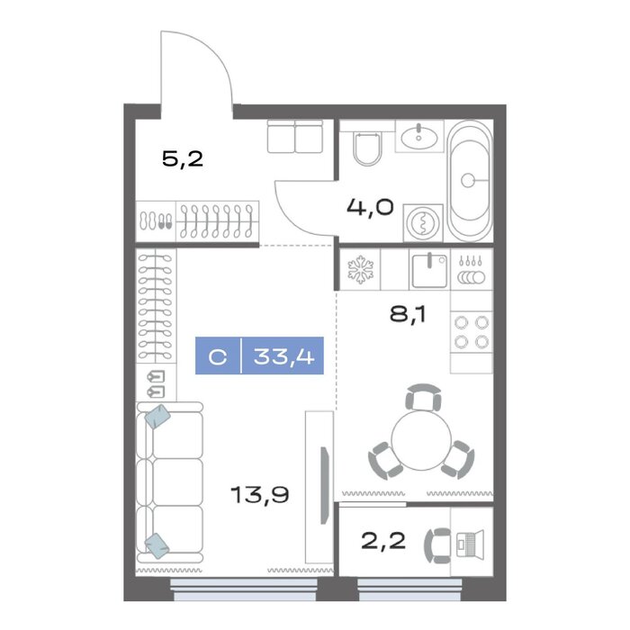 Общая площадь:33.4 м2