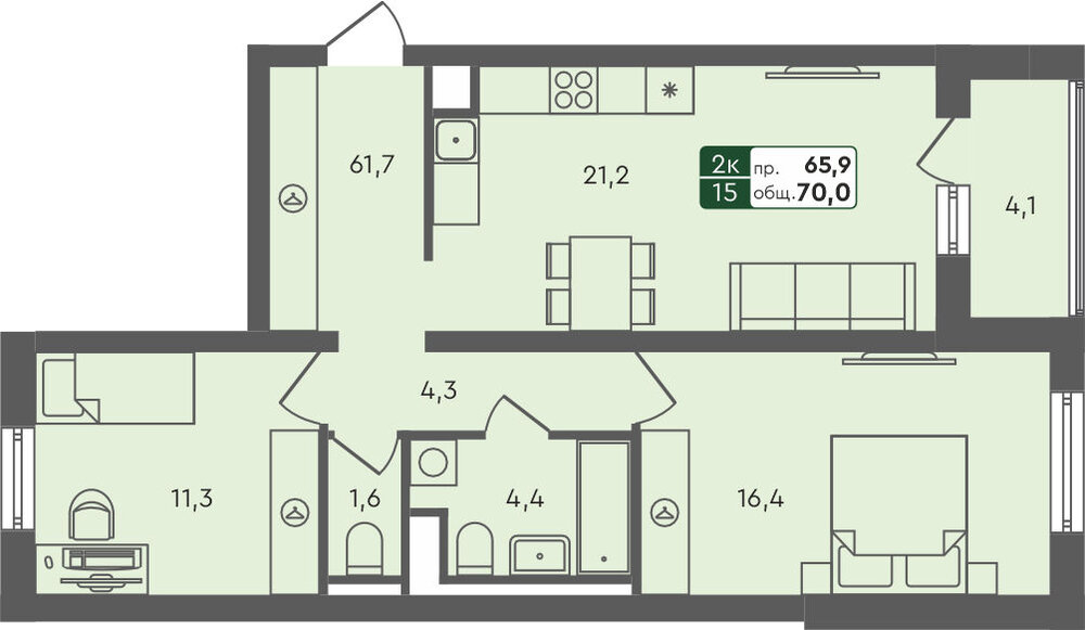 Общая площадь:70 м2