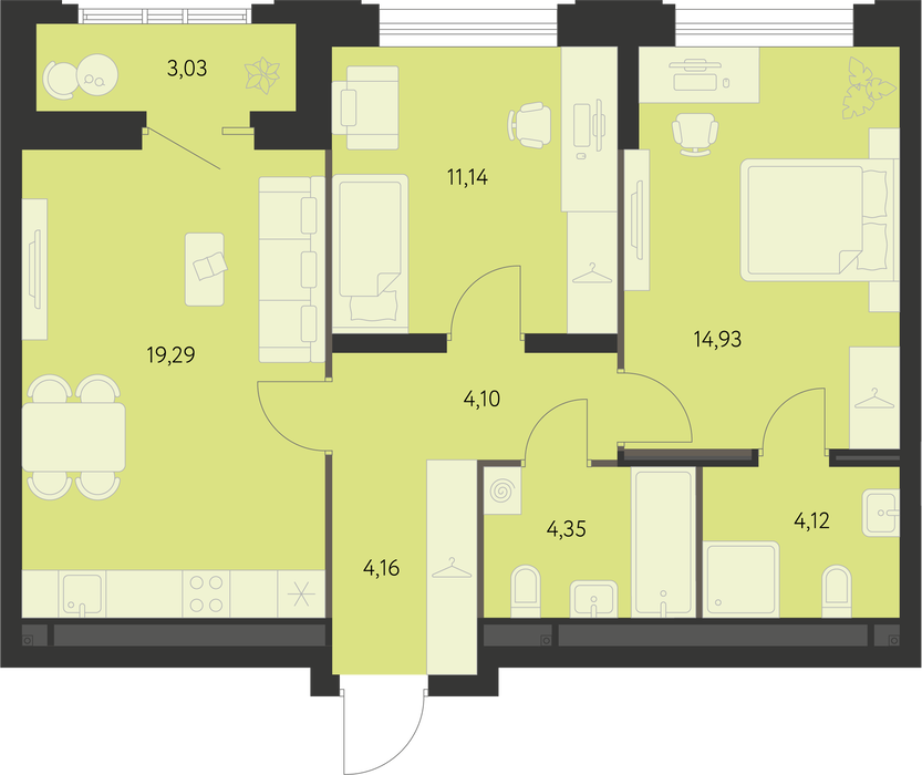 Общая площадь:63.61 м2