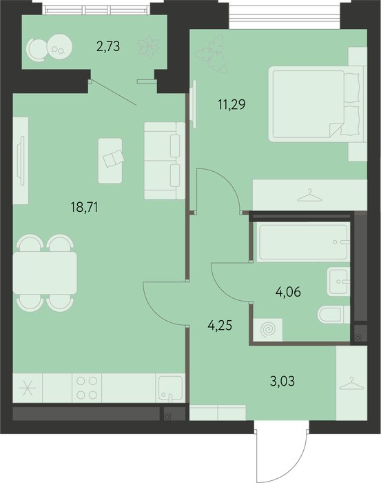 Общая площадь:42.71 м2