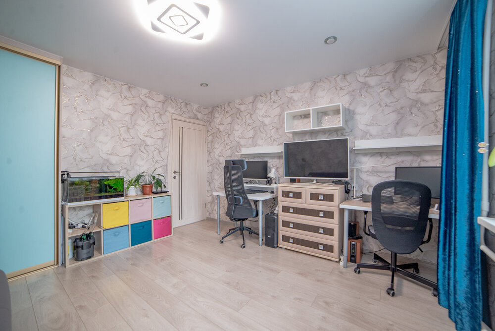 Состояние квартиры отличное и долго не потребует серьёзных вложений, пространство разумно спланировано - в комнате и в коридоре вместительные встроенный шкафы.