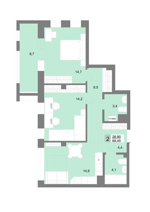 • 2-к квартира, Амундсена, 2, Дом "‎Милый дом" — 1 кв. 2026 г.
