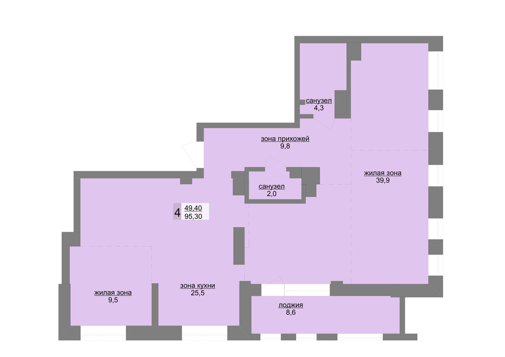 Общая площадь:95.3 м2