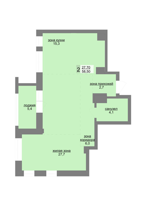 Общая площадь:58.5 м2