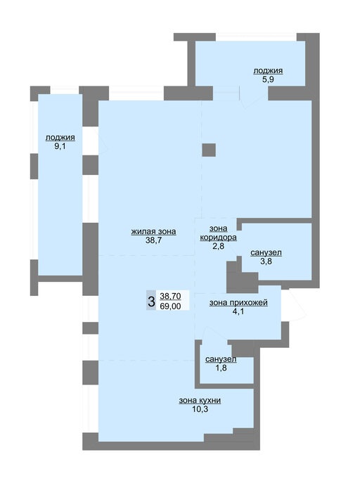 Общая площадь:69 м2