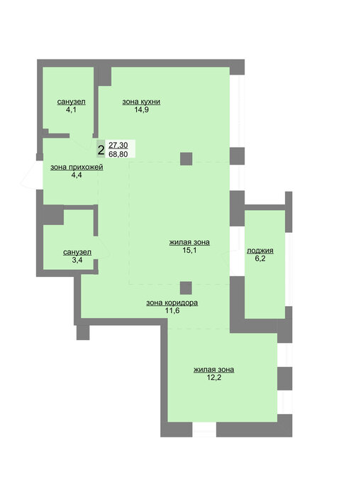 Общая площадь:68 м2