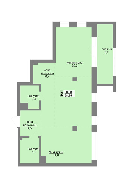 Общая площадь:69.05 м2