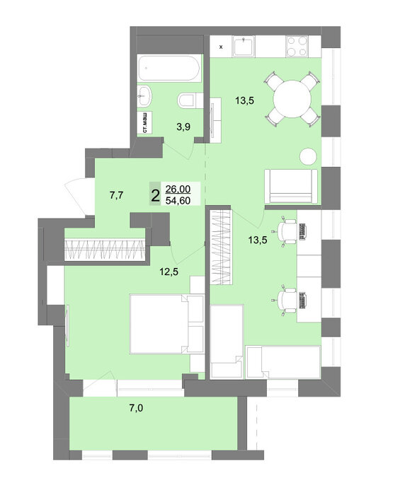 • 2-к квартира, Амундсена, 2, Дом "‎Милый дом" — 1 кв. 2026 г.