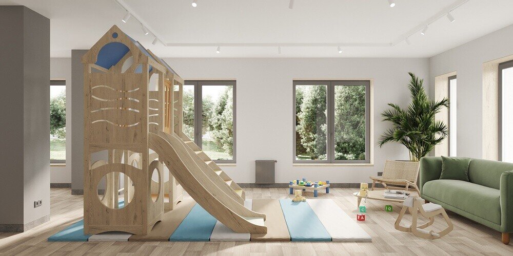 Почувствуйте семейное спокойствие в закрытом дворе с безопасной игровой площадкой. Во дворе даблхауса нет машин, а газоны и аллеи делят его на удобные уровни. Пока дети гоняют мяч и качаются на качелях, а подростки делают трюки на скейте, взрослые могут отдохнуть в небольшом амфитеатре. Эстетику двора создают фотогеничный арт-объект и ландшафтные элементы. На территории Даблхауса "1:1" легко ориентироваться — ваши гости точно найдут дорогу, а дети всегда будут под присмотром.