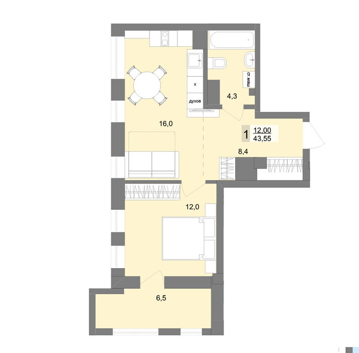 Комфорт-Мы позаботились о том, чтобы в вашей квартире было больше пространства для вас. Храните тяжелую коляску, велосипед или самокат в удобном помещении, созданном специально для этих целей.\