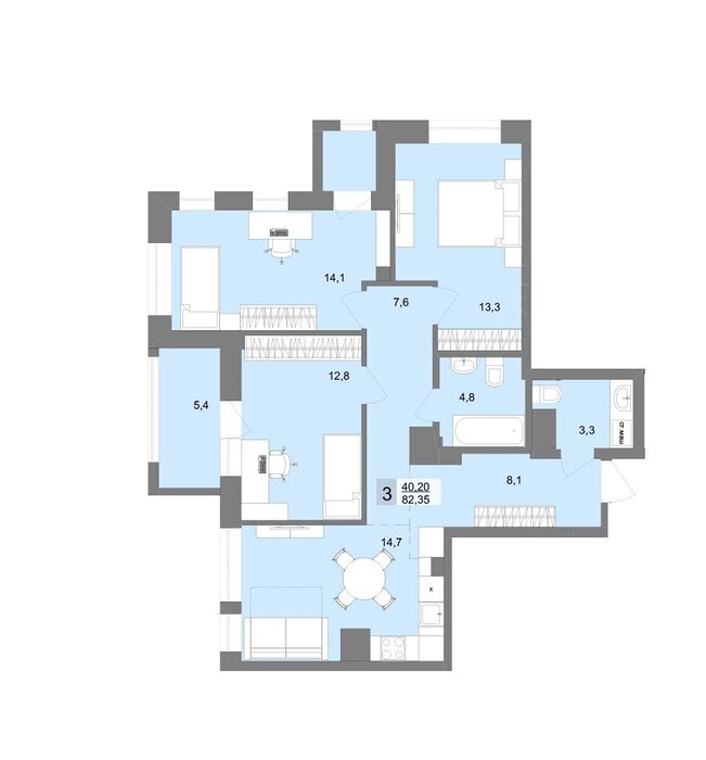 Продажа квартиры: Екатеринбург, ул. Репина, 24, ЖК "Даблхаус "1:1" (Секция 1) (Юго-Западный)