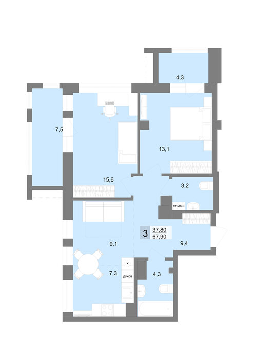 Общая площадь:67.9 м2