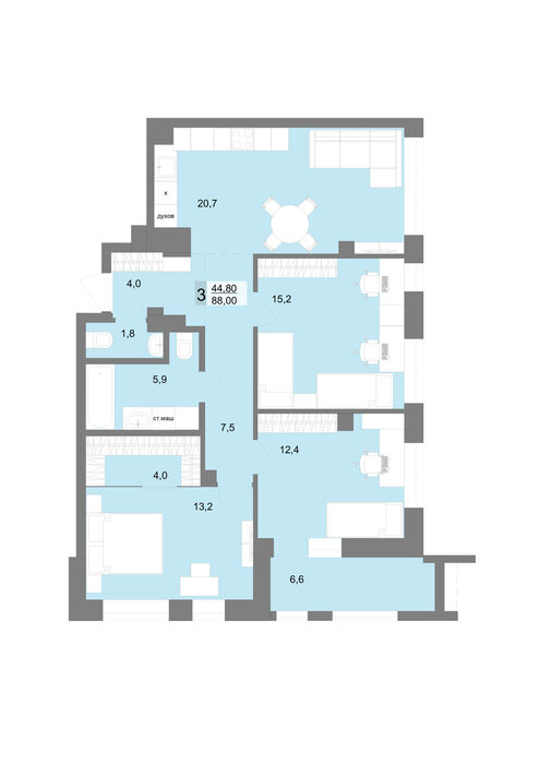 - 3 к.: 88.80 м2 – 14 586 136 ₽