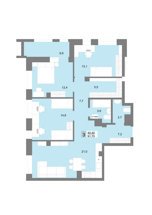 Общая площадь:91.7 м2