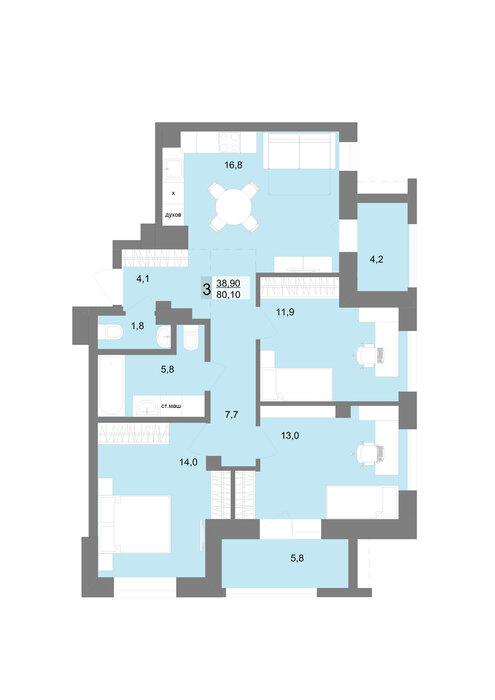 Входные двери в квартиры оборудованы умным замком, который позволит попадать в квартиру пятью независимыми способами: код-пароль, ключ-карта, bluetooth-устройство (смартфон, смарт-часы, планшет), отпечаток пальца или механический ключ.