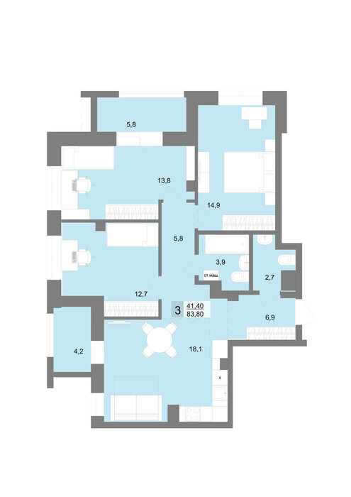 Общая площадь:83.8 м2