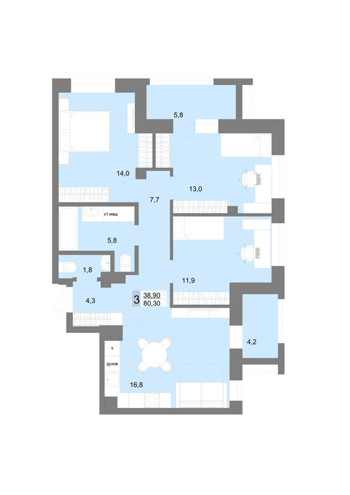 Входные двери в квартиры оборудованы умным замком, который позволит попадать в квартиру пятью независимыми способами: код-пароль, ключ-карта, bluetooth-устройство (смартфон, смарт-часы, планшет), отпечаток пальца или механический ключ.