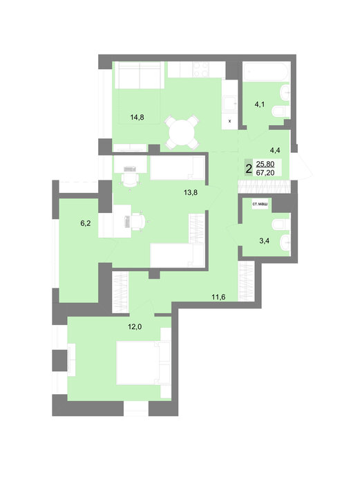 Общая площадь:66.4 м2
