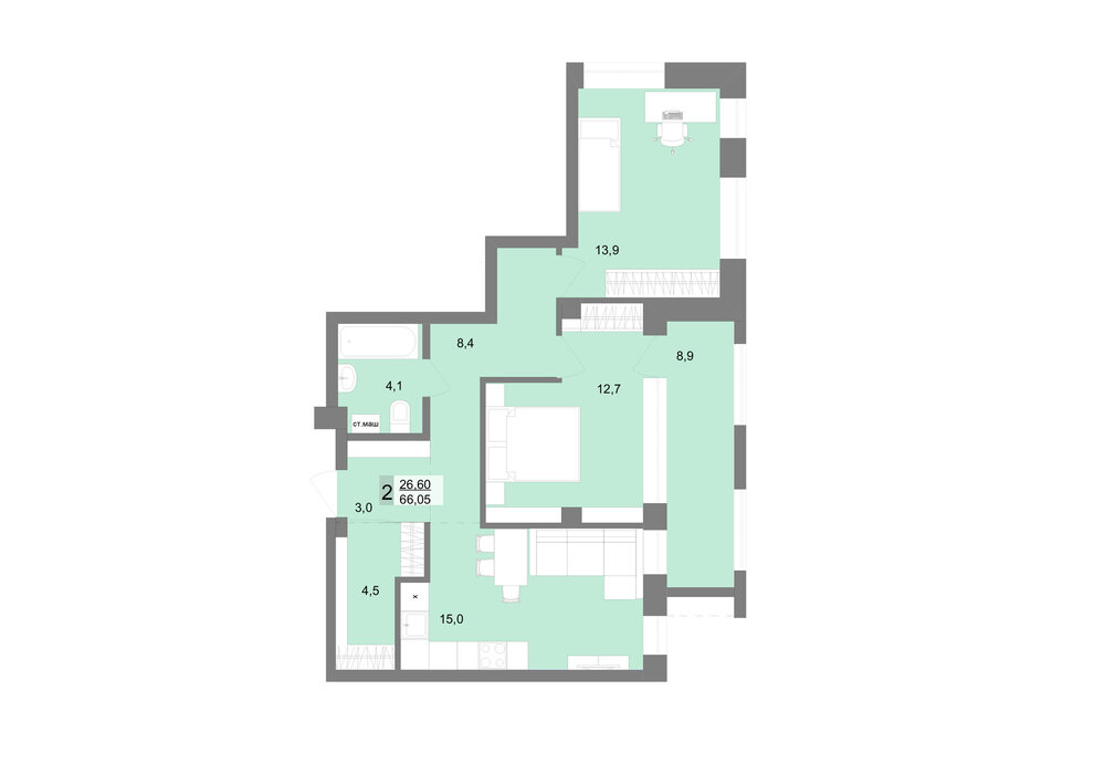 13 900 000 ₽ (210100 ₽/м2)