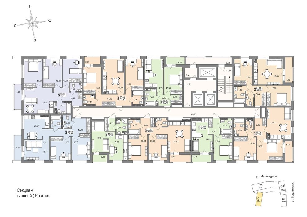 Преимущества проекта Отделка квартир чистовая Переезжайте сразу после получения ключей. Входные и межкомнатные двери с фурнитурой, 5-камерные окна, прочный ламинат 32 класса, обои под покраску, оборудованные сантехникой узлы. В каждой квартире ниши для шкафа или гардеробной. Ограничители на окнах «безопасность детей» Препятствуют возможности полного открытия окон, обеспечивают безопасность детей. Клапан инфильтрации воздуха Круглосуточный приток свежего воздуха без проветривания, защита помещения от насекомых, шума и пыли. Уютные парадные Геометрия линий и цветовая палитра парадных тщательно проработаны архитекторами и воплощены в стильное пространство. Музыка в холлах Легкая фоновая музыка в холлах формирует приятную атмосферу, расслабляет и успокаивает, помогает отвлечься от городской суеты. Увеличенная высота кабины лифта Лифты с увеличенной высотой кабины и пониженным уровнем шума для комфортного перемещения и перевозки крупногабаритных грузов. Детская игровая комната в холле Организовать досуг ребенка можно, не выходя из дома. Игровая в ярких позитивных тонах непременно понравится вашим непоседам. Даже плохая погода не помеха, достаточно спуститься в игровую, где ваш ребенок сможет поиграть, а вы, наблюдая за ним, пообщаться, почитать и просто отдохнуть. Колясочные на первом этаже в каждой секции Удобное место для хранения колясок, велосипедов и самокатов. Прогулочные дорожки на эксплуатируемой кровле-террасе Современная зона отдыха для романтических вечеров или встреч с друзьями. Парковка для велосипедов и электросамокатов во дворе Быстрая и удобная парковка для вело и электротранспорта прямо во дворе. Безопасная организация дорожного передвижения Для безопасного перемещения через крупную автомобильную дорогу будет организован регулируемый перекресток. Закрытый паркинг Не будет сложностей с поиском парковочного места, очисткой от снега или прогревом. Ваш автомобиль будет находится под неустанным контролем и защитой 24/7.