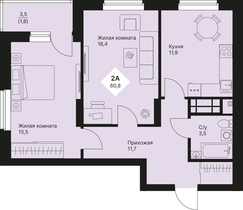 Количество комнат:2