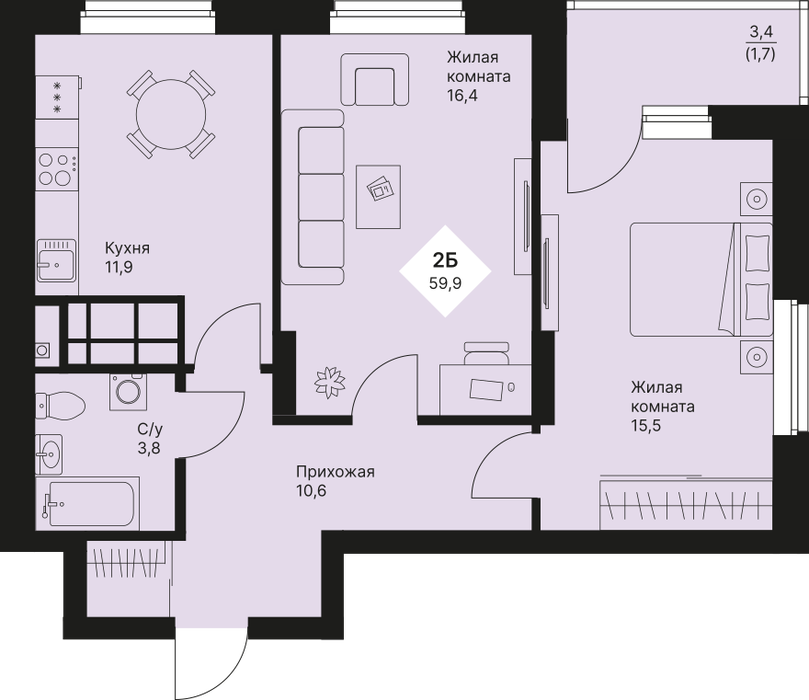 Общая площадь:59.85 м2