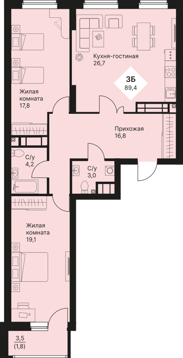 Общая площадь:89.35 м2