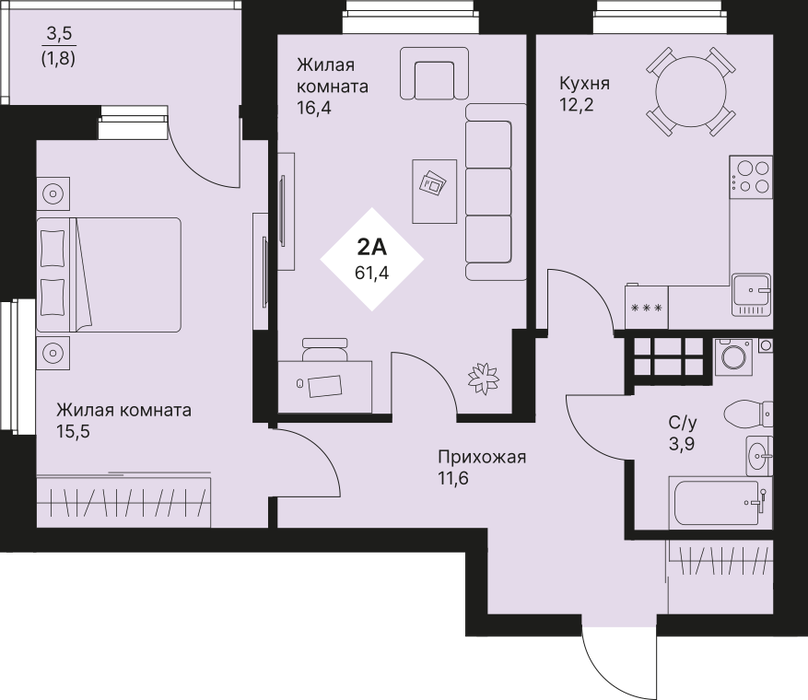 • 2-к квартира, Владимира Белоглазова, 2д, Жилой район «Изумрудный Бор» — 1 кв. 2026 г.