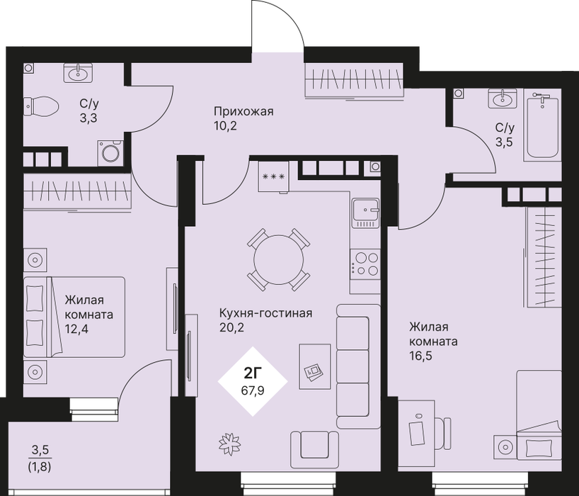 Общая площадь:67.85 м2