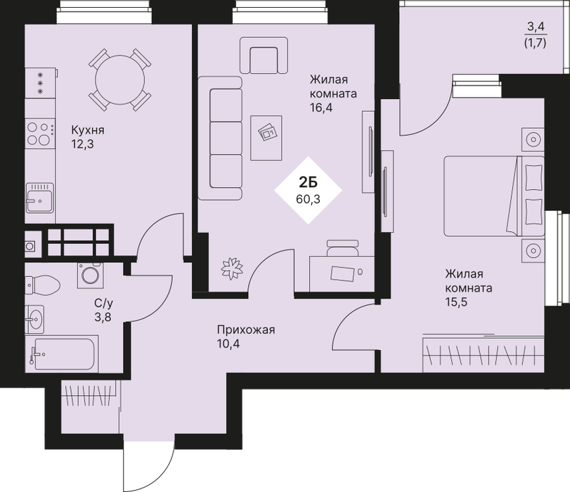 • 2-к квартира, Владимира Белоглазова, 2д, Жилой район «Изумрудный Бор» — 1 кв. 2026 г.