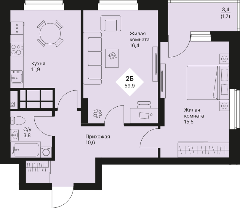 Общая площадь:59.85 м2