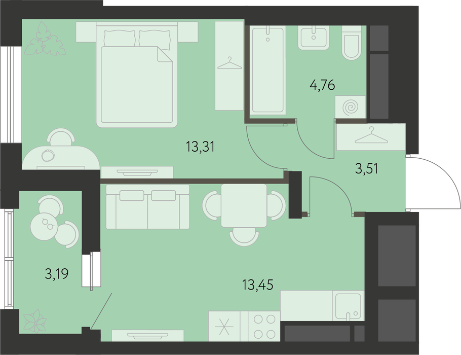 Общая площадь:36.88 м2