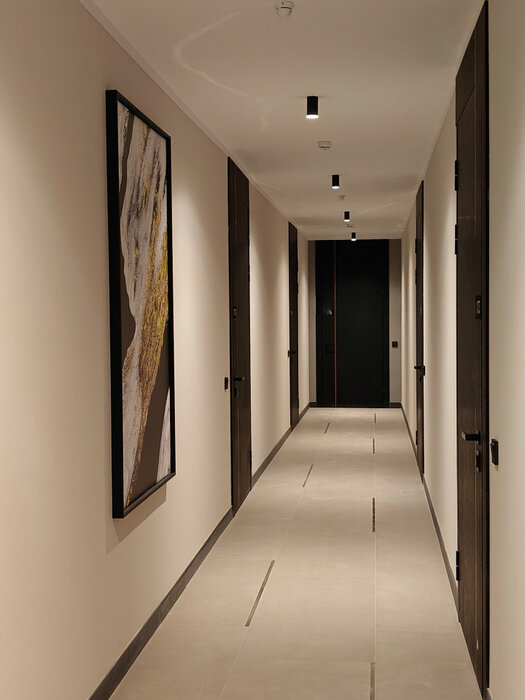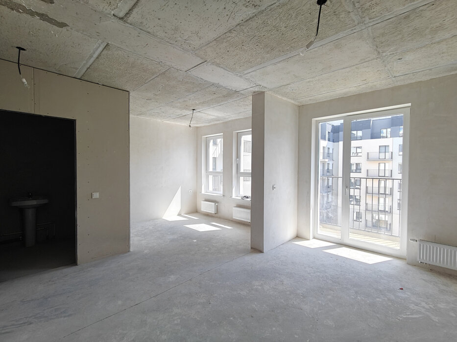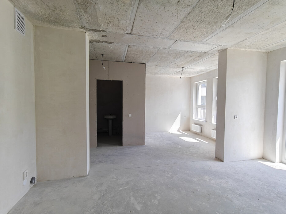 В квартире выполнена предчистовая отделка. Межквартирные стены сделаны из керамического блока, они выровнены и оштукатурены, межкомнатные — из гипсокартона. Всё готово к чистовой отделке. Пол залит цементно-песчаной стяжкой с утеплителем, проведена электрика, сделаны выводы под сантехнику, нанесена обмазочная гидроизоляция в ванной комнате, установлены радиаторы отопления и приборы учета, показания которых автоматически передаются в управляющую компанию благодаря системе телеметрии. Установлены большие окна размером 2,55×1,8 метра. Они состоят из пятикамерного пластикового профиля, который блокирует уличный шум и защищает помещения от промерзания, и мультифункционального стекла, сохраняющего в комнатах тепло зимой и прохладу летом.