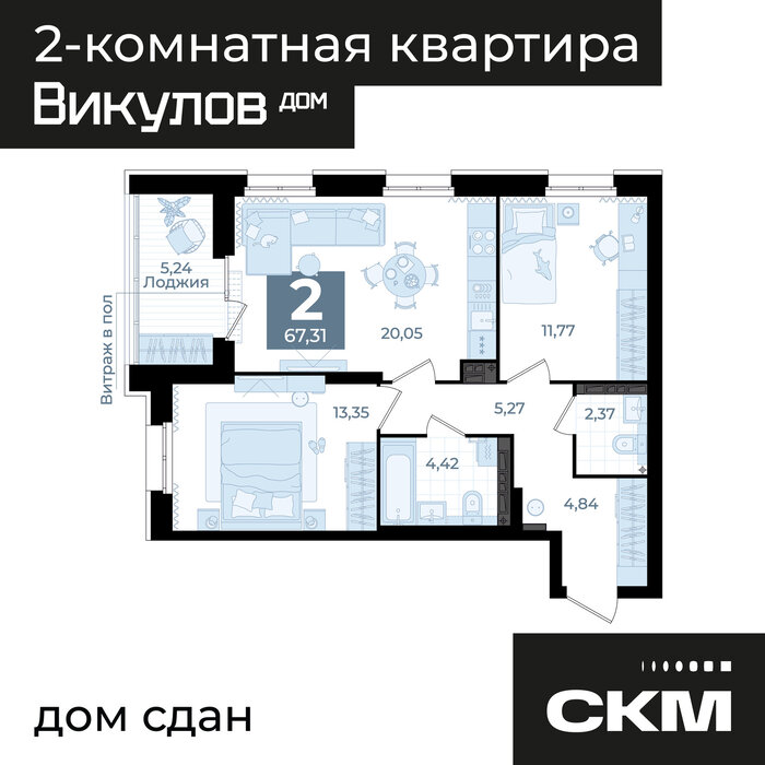 Большинство планировок имеют две и три спальни, просторные кухни-гостиные и два санузла. Места хватит даже большим семьям.