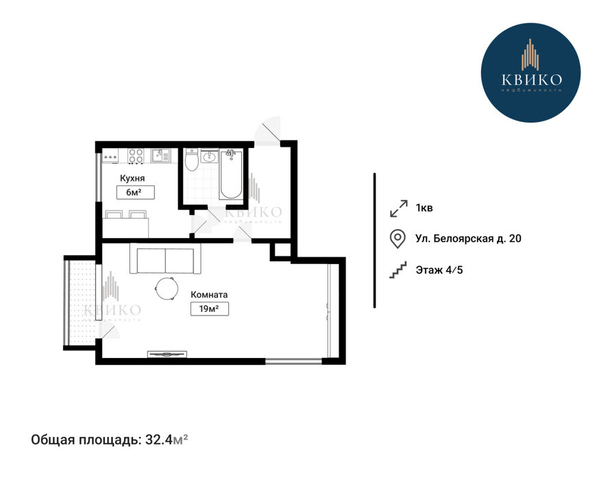Екатеринбург, ул. Белоярская, 20 (Компрессорный) - фото квартиры 29 августа 2021 90 дн. 1 32 5/5 1 710 000
