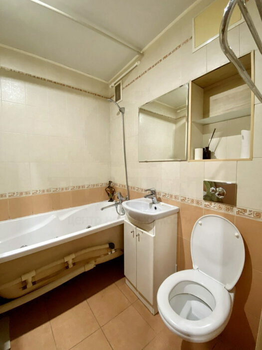 Санузел совмещенный. Пластиковые окна и балкон, подвесной потолок, ламинат. В квартире установлен кондиционер, шкаф и диван, изготовленные под заказ, проведен интернет, домофон, счётчики воды и электричества. Застеклённый балкон.